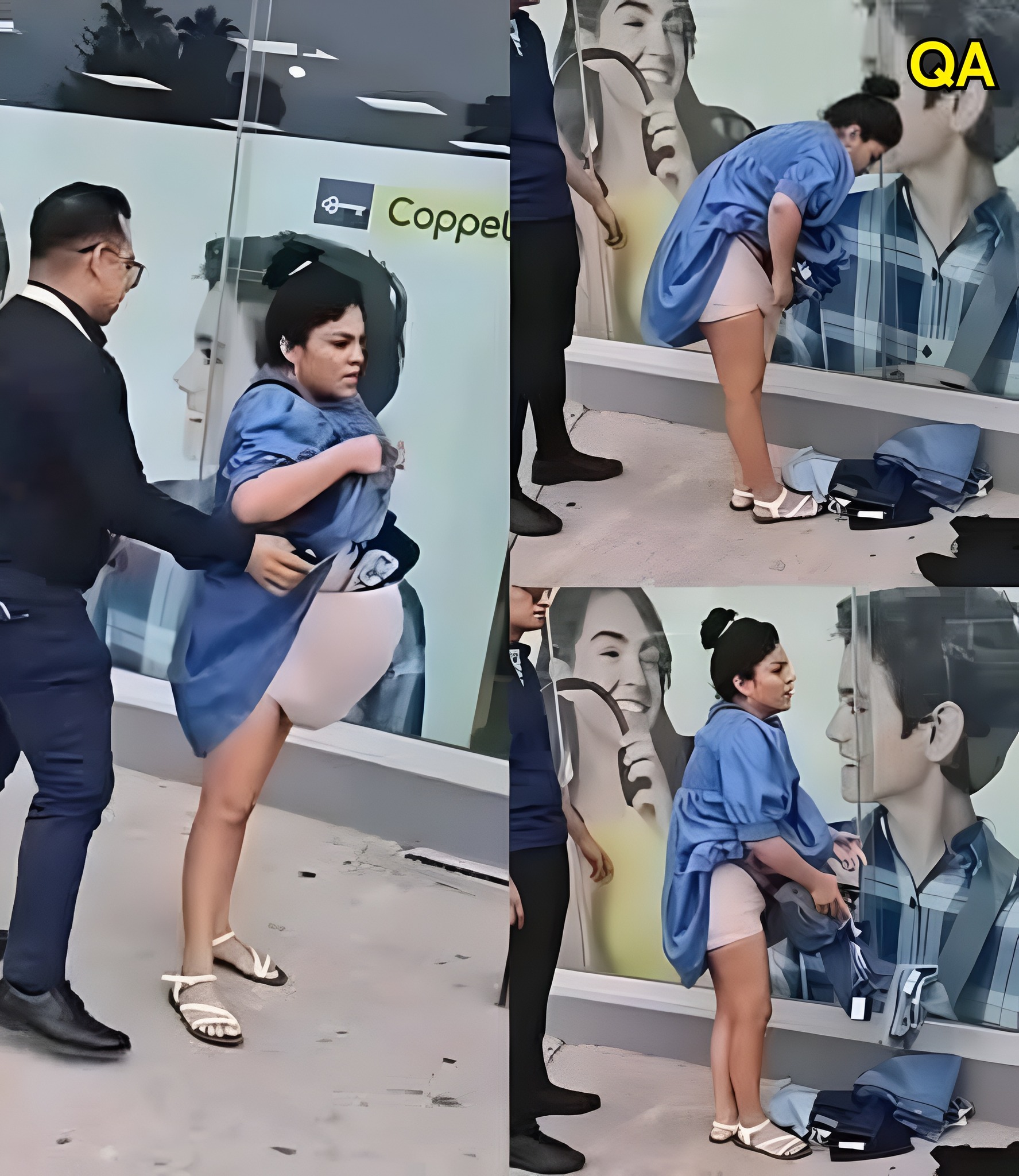 On an ordinary sidewalk, nothing is supposed to happen. People pass, storefronts reflect curated images, and daily routines unfold without interruption. Yet sometimes, a fleeting moment disrupts that rhythm and invites deeper reflection. Imagine a woman mid-motion, adjusting her clothing in front of a polished glass display, while a uniformed figure nearby enforces an unspoken boundary. Behind the glass, an advertisement presents a flawless, composed version of human connection. In front of it, reality feels less scripted.