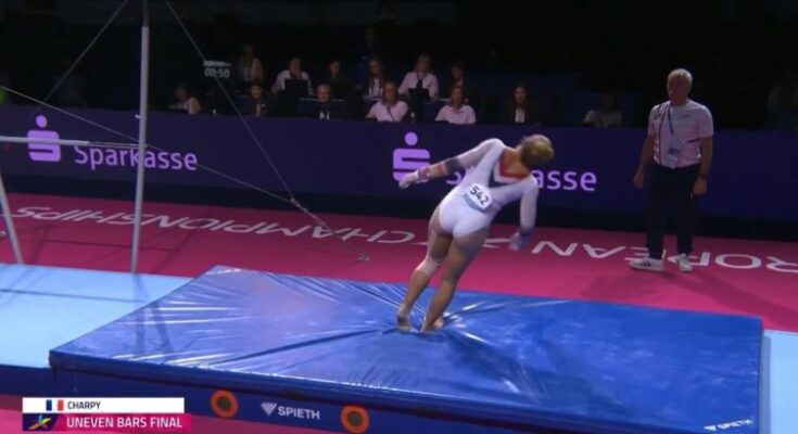 During the uneven bars final at the 2022 European Gymnastics Championships in Munich, French gymnast Lorette Charpy left the audience in shock after a dramatic fall. While landing her double layout dismount, Charpy collapsed onto the mat, prompting immediate concern from spectators and fellow athletes. The unsettling scene, captured on video, highlighted the high-stakes nature of elite gymnastics.